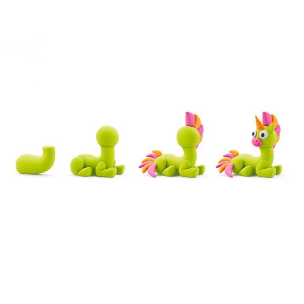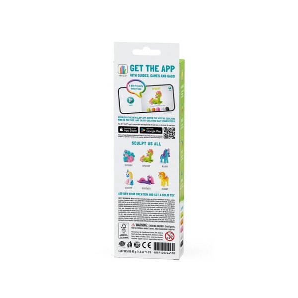 De kleiset Regenboog eenhoorn Sparky van HeyClay bevat alle benodigdheden om een unicorn te maken. Met behulp van de bijbehorende app, ontvang je de uitleg hoe je de unicorn kunt boetseren. Dit wordt uitgelegd aan de hand van animaties, wat het natuurlijk extra leuk maakt! Kies een figuur wat je graag wilt maken en volg eenvoudig de instructies, er wordt verteld welke kleur je nodig hebt en hoe je de losse onderdelen kunt maken.