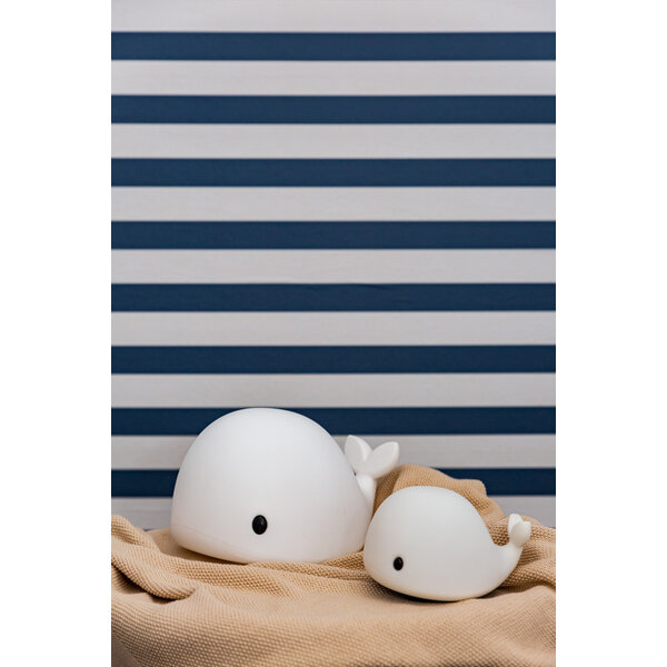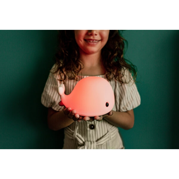 Dit wilda de walvis nachtlampje van Little L zorgt voor extra gezelligheid in de kinderslaapkamer. Een nieuwe vriend voor op het nachtkastje. Raak het lampje aan en het licht op met zacht wit licht, eenmaal aan tikt u nog een keer voor helder wit licht. Tik een tweede keer en verander het in 6 verschillende kleuren; rood, geel, groen, blauw, roze en oranje. Ook is er een regenboogmodus, de lamp verandert dan geleidelijk van kleur.