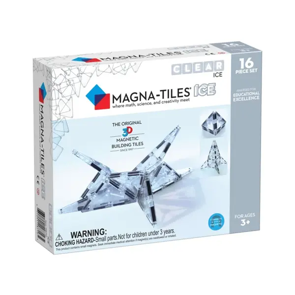 Laat de fantasie van je kind schitteren met de Magna-Tiles® ICE set – 16 stuks! Deze speciale set bevat volledig transparante magnetische tegels, perfect voor het bouwen van ijskastelen, glazen torens en andere heldere creaties. De doorzichtige tegels geven een extra magisch effect aan elke bouw.