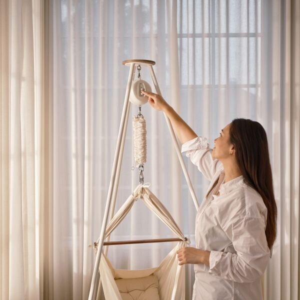 De Moonboon Motor Connect is gemaakt om je kindje zachtjes in slaap te wiegen. Met de wiegmotor ondersteun je het natuurlijke slaapritme van je baby. De wiegmotor integreer je gemakkelijk met je Moonboon Organic Hangmat. De wiegmotor heeft 3 verschillende slaapprogramma’s met verschillende lengtes. Zo biedt de motor programma’s voor een kort slaapje van 30 minuten, een lang slaapje van 2,5 uur en voor de nacht van 5,5 uur. Je bedient de wiegmotor met de app. In de app kies je een vooraf ingesteld programma of stel je de schommelintensiteit en gebruikstijd naar wens in. De app is beschikbaar in de Google Play Store en App Store. Verder krijg je bij de wiegmotor een voedingskabel van 3 meter en 2 karabijnhaken.