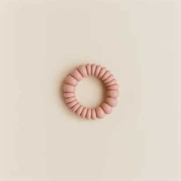 De mosie bijtring bestaat uit een gekleurde ring samengesteld met silicone kralen.