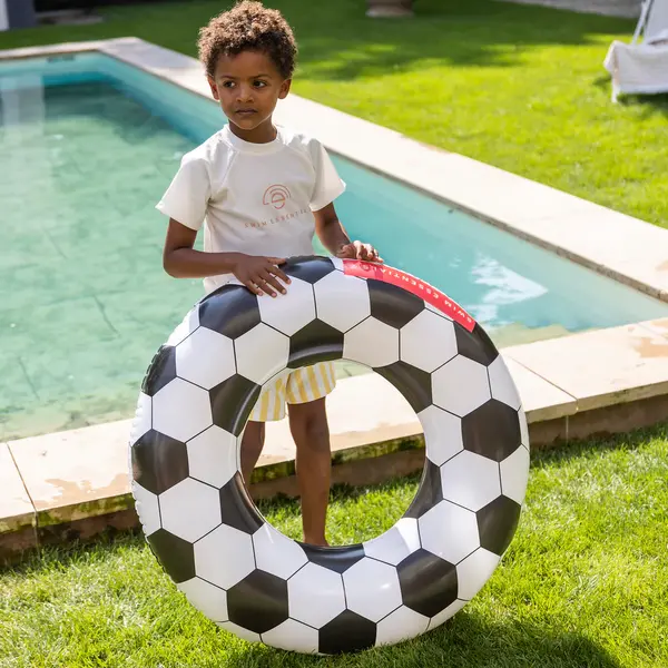 Scoren in stijl? Met de Swim Essentials Zwemband Voetbal 90 cm wordt elk zwembad een speelveld vol plezier! Deze stoere zwemband met voetbalprint is perfect voor sportieve waterratten van 6 jaar en ouder. Of je nu lekker dobbert of een wedstrijdje ‘wie blijft het langst drijven’ speelt deze zwemband maakt er een feestje van!