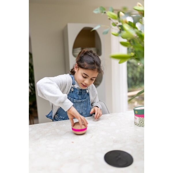 Voeg kleur en speelsheid toe aan de speelkamer met de Wobbel Big Macaron Candy 'Nice'. Deze vrolijke speelsteen in macaronvorm is onderdeel van de Wobbel Candy Collectie en biedt eindeloos open-ended speelplezier voor jonge kinderen. Gemaakt van duurzaam PEFC-gecertificeerd beukenhout en afgewerkt met een zachte, BPA-vrije siliconen rand in een speelse paarse kleur, stimuleert deze macaron balans, motoriek en creativiteit. Perfect voor rollen, stapelen, balanceren en zelfs sensorisch spel. Door het compacte formaat en het stevige design is hij ideaal voor thuis, onderweg of op school.